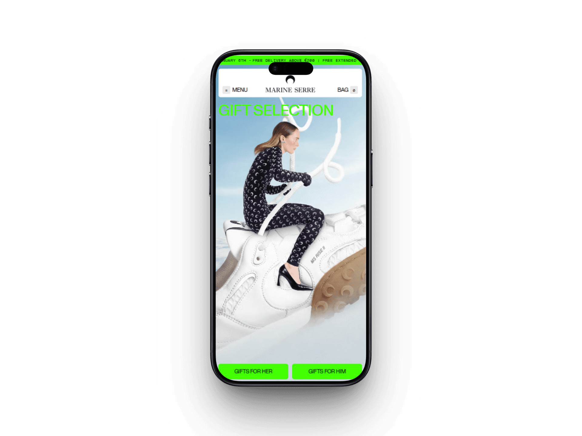 Une plateforme e-commerce haut de gamme dédiée à l’univers Marine Serre, pensée pour maximiser son impact dans l’industrie de la mode internationale.